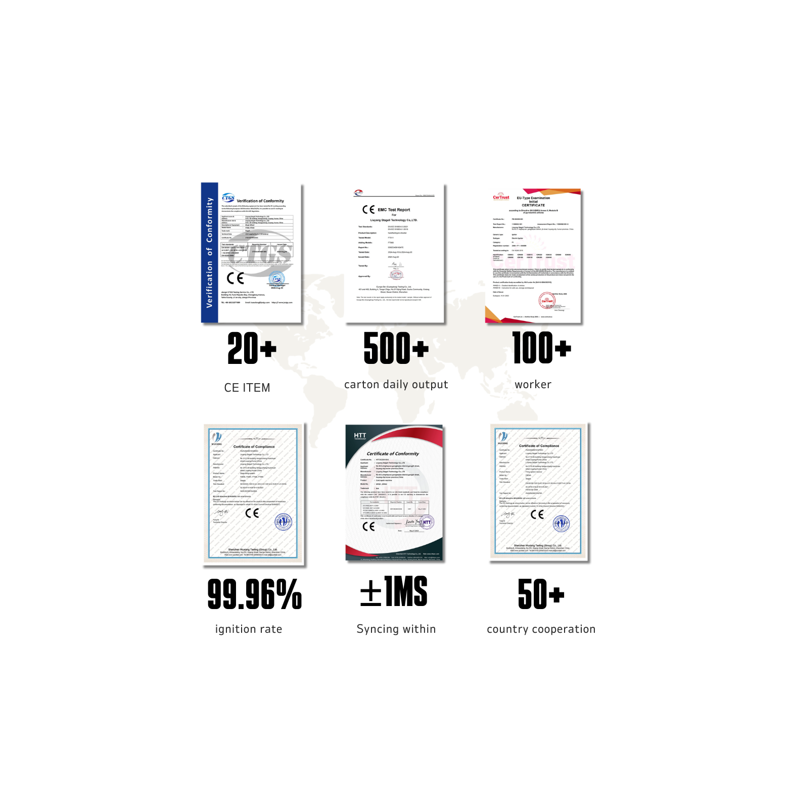 Liuyang Stageli Technology specializes in professional firing equipment for fireworks displays, including igniters, mortar tubes, and launching racks.Our products are CE-certified and comply with various international regulations, with approvals such as Module E, ADR, Catex, and BAM.For igniters,we offer standard versions suitable for all markets, as well as high-resistance igniters capable of connecting over 50 units as required, and low-sensitivity igniters for enhanced safety.